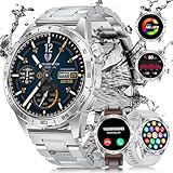 - 【Anzeige AMOLED e 3 Cinturini】Diese smartwatch herren ist mit einem hochauflösenden AMOLED-HD-Bildschirm mit 466*466 Pixeln ausgestattet, der ein feines visuelles Erlebnis bietet und im Sonnenlicht oder in der Nacht gut sichtbar ist. Mit drei Armbändern, einschließlich Stahlband, Silikonband und Lederband, passt sich an verschiedene Anlässe und Stile an und zeigt Ihre Persönlichkeit zu jeder Zeit.