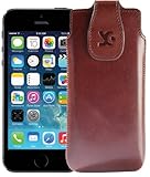 - Designer Leder Tasche für Apple iPhone 5 5G Braun Brown Ledertasche Cover Schutzhülle Edel Leather Lasche mit Easy-Out Rückzugfunktion