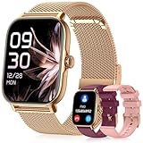 - 【Bluetooth-Anrufe & KI-Sprachassistent】Die Smartwatch Damen mit einem integrierten Bluetooth 5.3-Chip und einem DSP-Chip ausgestattet. So können Sie ganz einfach Anrufe tätigen und entgegennehmen, Kontakte speichern und Benachrichtigungen erhalten (unterstützt WhatsApp, Facebook, TikTok usw.). Der KI-Sprachassistent kann Sprachassistenten Ihres Mobiltelefons wie Siri und Google Assistant aktivieren.