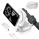 - 【3 in 1 Kabellose Ladestation mit Adapter】:Befestigen Sie Ihr iPhone nahtlos am mag-safe ladegerät und legen Sie Ihre Apple Watch auf das magnetische Uhr-Lademodul.Die starke magnetische Ausrichtung gewährleistet,dass Ihre Geräte präzise in der Mitte des drahtlosen Ladestation angebracht sind.Selbst mit geschlossenen Augen können Sie sofort das richtige Ladezentrum für Ihr Telefon ermitteln.Laden Sie Ihr iPhone während des Ladevorgangs mit diesem mag-safe ladegerät seitlich,es passt perfekt zum iOS 17 StandBy.