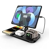 - 【4 in 1 Apple Ladestation】 iPhone-Ladehalterung zum gleichzeitigen Aufladen von iPhone, Apple Watch Series, Kopfhörern und iPad. Einzigartige iPad-Standfunktion, die Ihre Hände befreit. Es kann Ihr iPad Pro oder andere Telefone/Tablets über den zusätzlichen USB-C-zu-C-Anschluss aufladen (45-W-Adapter im Lieferumfang enthalten).