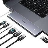 - 4K 30Hz HDMI und 5K 60Hz Thunderbolt 3 MacBook Hub : Dieser MacBook USB C Hub HDMI Port unterstützt die Auflösung von 4K 30Hz, Thunderbolt 3 Port unterstützt 5K 60Hz. Unterstützt Dual Monitor Display, um das Display Ihres Laptops auf TV, Monitor oder Projektor zu spiegeln oder zu erweitern. Hinweis: Für MacBook M1 M2 M3 Chips unterstützen die Anzeige von 2 externen Monitoren nicht. Einer von ihnen wird einen Blackout Bildschirm zeigen