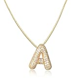 - 【Passende Größe】AFSTALR Damen bubble buchstaben kette Gold/Silber Ballon halskette mit initial Anhänger Blase Schmuck.Chain Length 45+5cm djustable.