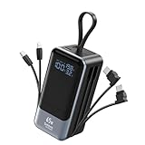 - 【Schnellladeausgang * 4】Alle schnelleren Ladeausgänge, diese power bank klein hat 4 Ausgänge, USB-C-Kabelausgang war PD 30W max; iOS-Kabelausgang war PD 20W max; USB-C-Ausgang war PD 30W max; USB-A-Ausgang war QC 22,5W max. PD 30W kann Ihr iPhone 16 in 30 Minuten auf 60 % aufladen. PD 20W kann Ihr iPhone 14 in 30 Minuten auf 50 % aufladen