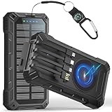 - 【Laden Sie 5 Geräte Gleichzeitig auf】Die solar powerbank kann fünf Geräte gleichzeitig mit Strom versorgen – ideal für Gruppenausflüge. Ausgestattet mit zwei USB-A-Anschlüssen, einem USB-C-Ausgang und integrierten Lightning- und USB-C-Kabeln kann es Ihr Telefon, Ihre Bluetooth-Kopfhörer und Ihre Campinglaterne gleichzeitig mit Strom versorgen