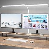 - 【Variable Beleuchtungsoptionen】 Diese 24W LED Schreibtischlampe mit Doppelkopf Design bietet 25 Lichtkombinationen mit 5 Farbtemperaturen (3200K-6500K) und 5 Helligkeitsstufen (20%-100%), zusammen mit Nachtlicht und Lesemodus, um verschiedene Beleuchtungsbedürfnisse zu erfüllen. Geeignet für Heimbüro, Arbeitsplatz, Studie, Architekt, Computer, Zeichnung, Nähen, Handwerk, Malerei, Lesen, Gaming.