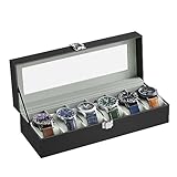 - [Für bis zu 6 Uhren] Mit 6 Fächern können Sie in dieser Uhrenbox Ihre Uhren mit einem Zifferblatt von bis zu 51 mm an einem Ort aufbewahren, so dass Sie schnell die passende Uhr zum ausgewählten Outfit finden