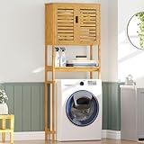 VIAGDO Toilettenregal Bambus, Badregal mit Schrank, Waschmaschinenschrank, WC Überbauschrank, Waschmaschine Überbau Badezimmer Regal, Toilettenschrank, 64 x 26 x 168 cm