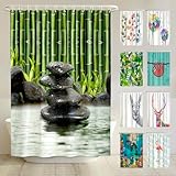 wiipara Duschvorhang 180x200cm, Wasserabweisende Duschvorhänge Grün Bambus Shower Curtains Bad Vorhang, Waschbar Badzimmer Badewanne Vorhang Duschvorhang Anti Schimmel mit 12 Duschvorhangringe