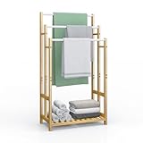 Dripex Freistehender Handtuchhalter Bambus Höhe 96 cm Handtuchständer Badetuchhalter mit 3 Edelstahlstangen und Ablage für Badezimmer, Zuhause, Natur 96H x 46B x 24T cm (96cm)