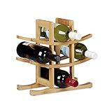 Relaxdays Weinregal aus Bambus, für 9 handelsübliche Flaschen, originelles Design, freistehend,14.5 x 30 x 30 cm, natur