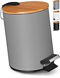 VMbathrooms 3L Kosmetikeimer in edlem grauem Design | Tretmülleimer mit Absenkautomatik (Soft Close) | Eleganter Eimer fürs Bad mit Innenbehälter und Bambus-Holzdeckel