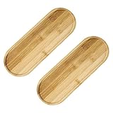 JTgugu 2 Stück Bambus Tablett Oval 28x10x1cm Untersetzer Dekorative Tabletts Servierteller Küchentablett für Brot Dessert Keks Tee Kaffee Kuchen