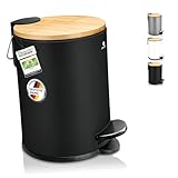 - Modern: Weißer Kunststoff-Mülleimer mit Schwingdeckel aus Bambus - Schlichter skandinavischer Look