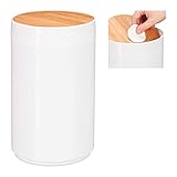 Relaxdays Kosmetikeimer, Bambus Schwingdeckel, moderner Bad Mülleimer, Kunststoff, 5,5 L, H, B x D: 26,5 x 18 x 18 cm, weiß