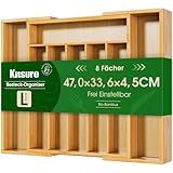 Kitsure Besteckkasten für Schubladen - Schubladen Organizer Küche mit 8 Fächern, stabiler Besteckkasten aus Bambus als vielseitiger Küchen Organizer, 33,6 x 4,5 x 29,0-47,0 cm