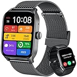 - 【Bluetooth-Telefonie und Nachrichten – Immer erreichbar, egal wo Sie sind】 Diese Smartwatch hält Sie in jeder Situation verbunden: Führen Sie wichtige Anrufe direkt vom Handgelenk aus, ob während einer Präsentation im Büro, bei einem Spaziergang mit Freunden oder beim Kochen in der Küche. Echtzeit-Benachrichtigungen zu SMS, WhatsApp oder sozialen Medien helfen Ihnen, auf dem neuesten Stand zu bleiben, ohne Ihr Smartphone ständig nutzen zu müssen.Fitnessuhr herren sportuhren Herren.