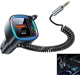 - 【12W Schnellladung & Doppel-Anschlüsse】Dieser auto bluetooth adapter aux bietet zwei unabhängige Ladeanschlüsse: einen USB-A (12W) und einen USB-C PD (30W) Port. Laden Sie bis zu zwei Geräte gleichzeitig mit einer kombinierten Leistung von bis zu 42W. Die Ladegeschwindigkeit können die Musik auf dem USB-Flash-Laufwerk spielen, was Ihnen ein wunderbares Hörerlebnis bringt. – Aux bluetooth 5.4 adapter auto perfekt für unterwegs.