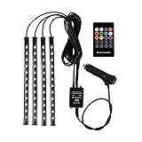 - 【Mehrfarben- und Speicherfunktion】 Unendlich DIY-Farben Über 16 Millionen Farben und verschiedene Töne per App und einer RF-Fernbedienung können Sie Ihre eigenen einzigartigen Farbmodi anpassen, um Ihr Auto perfekt zu verbessern. Mit Speicherchip haben die Farben, die Stimme, die Musik usw. alle Modi eine Speicherfunktion. Nachdem Sie die Modi das letzte Mal eingestellt haben, können Sie beim erneuten Einschalten die gleichen Modi wie bei der letzten Einstellung erhalten.