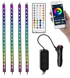 - RGB-IC-Technologie: mehrfarbige Lichteffekte in einem Streifen möglich • Für kreative Licht-Effekte im Innenbereich Ihres Autos • 4 helle LED-Streifen (je 30 cm) zur gleichmäßigen Ausleuchtung • Bequem steuerbar per Fernbedienung und kostenloser App • Mit Musik-Synchronisation • Schnell angebracht dank selbstklebender Rückseite