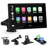 - 【Carplay & Android Auto】 Verbinden Sie Ihr Smartphone via Bluetooth mit Tragbares Carplay display und nutzen Sie kabelloses Carplay und Android Auto. Nach der ersten Verbindung verbindet sich das Fahrzeug automatisch mit Carplay oder Android Auto, wenn es gestartet wird. Unterstützt Sprachsteuerung durch Siri direkt über das Display des Fahrzeugs – ohne das Bedürfnis, den Touchscreen zu berühren. Geben Sie einfach Sprachbefehle, um ein sichereres und komfortableres Fahrerlebnis zu genießen.