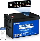 - 10 Jahre Lebensdauer und bis zu 15.000 Ladezyklen: Die 12V 150Ah Lithiumbatterie besteht aus Lithium-Eisenphosphat der Klasse A und bietet Ihnen ein Höchstmaß an Sicherheit. Die Batterie kann bis zu 15.000 Mal recycelt werden und hat daher eine Lebensdauer von 10 Jahren. Im Vergleich dazu halten Blei-Säure-/SLA-/Absorbent Glass Mat-Batterien in der Regel nur 3 Jahre (200-500 Zyklen).