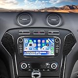 - 【Android 14- 8 Kern - 4GB RAM+64GB ROM】Dieses 2 din Autoradio carplay für Ford Mondeo Focus S-Max C-Max Galaxy hat Android 14.0 OS, Octa-Core, 8*A53 64-bit 2.0GHz CPU, Hochgeschwindigkeitsverarbeitung und Schnellstart, benchmark-Ergebnis übersteigt 220.000. Unterstützt 3 USBs mit bis zu 3*256GB erweitertem Speicher. 7-Zoll-Multi-Touch-IPS-Bildschirm, ultraklares Full-HD-Display. Unterstützt Lenkradsteuerung, Bluetooth, Freisprecheinrichtung, DSP-Verstärker, GPS-Navigation, Split-Screen, Rückfahrkamera-Eingang...