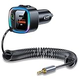 - 【PD30W Superschnellladung】Dieser bluetooth aux adapter auto unterstützt die Schnellladeprotokolle von Android und Apple. Ausgestattet mit der PD30W-Schnellladefunktion und einem Dual-Port-Design mit 5 V und 2,4 A lädt er zwei Geräte gleichzeitig mit einer maximalen Ausgangsleistung von bis zu 42 W und damit dreimal schneller als herkömmliche Ladegeräte. So können Sie zwei Geräte gleichzeitig effizient laden und müssen sich keine Sorgen um schwache Akkus machen