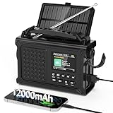 - 📻【5 Stromquellen & Größere Batterie Kapazität】: Der eingebaute 12000-mAh-Akku ermöglicht eine ununterbrochene Laufzeit von bis zu 60 Stunden bei mittlerer Lautstärke. Das Notfallradio ist mit einem großen 8500-mm²-Solarpanel aus monokristallinem Silizium ausgestattet, dessen Fläche sechsmal größer ist als bei herkömmlichen Solarradios. Dank branchenführender Solartechnologie ist die Ladeeffizienz doppelt so hoch. Das Radio kann über ein Type-C-Kabel, das Solarpanel, AAA-Batterien (nicht enthalten), den eingebauten Akku oder die Handkurbel geladen werden. In Notsituationen ohne Stromversorgung kann die Handkurbel zum Notladen verwendet werden.