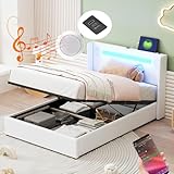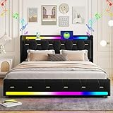 - 【Multifunktionales Bett】 Dieses gepolsterte Bett wird mit einem Bluetooth-Player und 2 Ladeanschlüssen geliefert, um Ihnen das Leben zu erleichtern. Der kabellose Bluetooth-Lautsprecher verbindet sich mit Ihrem Mobiltelefon, um Musik zu hören, und der Lichtstreifen folgt dem Rhythmus der Musik, um einen perfekten Schlafbereich für Sie zu schaffen.