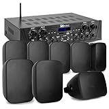 - Robust für Außen & Innen: Angetrieben von einem leistungsstarken 200W Verstärker, sind die 4 Lautsprecher wetterfest (IP56) und damit ideal als Aussenlautsprecher für Gastronomie. Perfekt für drinnen und draußen!