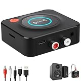 - 【Einfach zu bedienen】Einfach anzuschließen, zu koppeln und zu spielen. Verbinden Sie den ML201 bluetooth empfänger stereoanlage über das 3,5-mm- oder Cinch-Kabel mit Computerlautsprechern, Heimstereoanlagen oder anderen Lautsprechersystemen und koppeln Sie ihn dann mit Bluetooth-Audiogeräten wie Smartphones oder Tablets. Danach können Sie die Musik genießen. Hinweis: Dieses Produkt ist nur ein Empfänger, KEIN Sender.