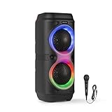 - Musikbox Bluetooth : Mehrfarbige LED Lichtshow pulsiert zur Musik – wählbar an/aus – schafft spektakuläre Atmosphäre für Karaoke, Feier, Grillfest.