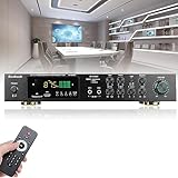 - 10 EINGÄNGE: Dieser Heim-Audio Verstärker ist mit einem HDMI-Eingang, einem optischen/Phono/Koaxial-Eingang, zwei 1/4-Zoll-Mikrofoneingängen für Karaoke, einem AUX-Anschluss, USB/SD-Eingängen und zwei Paar RCA-Anschlüssen (L/R) für CD/DVD-Player ausgestattet. Zudem verfügt er über ein UKW-Radio mit automatischem Suchlauf für Sender.