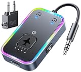 - [Bequemes kabelloses Bluetooth] Rüsten Sie Ihre In-Flight-Unterhaltung, Ihren Fernseher, Ihre Spielkonsolen, Fitnessgeräte oder jedes andere Audio-Gerät ohne Bluetooth-Funktion mit einem 3,5-mm-AUX-Anschluss einfach auf. Genießen Sie kabellosen Sound, indem Sie Ihre Bluetooth-Kopfhörer oder Lautsprecher verbinden und das lästige Kabelgewirr vermeiden.