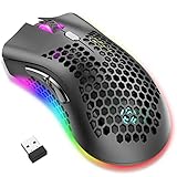 - 【Ultra Light Honeycomb Wireless Gaming Mouse】Die gut gestaltete ergonomische hohle perforierte Schale, bringt Ihnen die extremste Spielerfahrung. Reduziert das Gewicht, verbessert die Wärmeableitung und sorgt für Belüftung, damit Ihre Handflächen kühl und frisch bleiben. Garantiert langes Spielen ohne Ermüdung.
