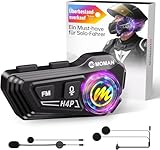 - 【Für eine Person mit Wireless 5.3 & 2 Smartphones Verbindung】Moman H4 Plus Motorrad-Headset nimmt Wireless 5.3 Technologie, wodurch effektiv die Unterbrechung und Lärm durch die Störung von 2,4GHz Band verursacht zu reduzieren. Darüber hinaus kann das H4 PLus auch zwei Smartphones gleichzeitig anschließen, um den unterschiedlichen Anforderungen von Navigation, Gespräch und Musikwiedergabe gerecht zu werden.(Anmerkung: Dieses Produkt verfügt nicht über die Gegensprechfunktion).