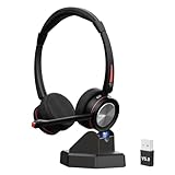 - 【Komfort & 45 Std. Gesprächszeit】Genießen Sie ganztägigen Tragekomfort durch das leichte Design (125 g) unseres kabellosen Headsets mit Mikrofon für die Arbeit . Das kabellose PC-Headset bietet weiche Memory-Schaum-Ohrpolster, 180° drehbare Ohrmuscheln und ein 270° verstellbares geräuschreduzierendes Mikrofon für eine perfekte Passform. Nur 2 Stunden Ladezeit liefern bis zu 45 Stunden Gesprächszeit oder 1 Woche im Standby-Modus.