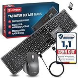 - 🖱️ LEISE & PRÄZISE – Die flache Tastatur mit leisen Tasten und die Funkmaus mit 2400 DPI sorgen für effizientes, konzentriertes Arbeiten – perfekt für Office & kreatives Arbeiten.