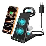 - 【Wireless Charger mit QC 3.0-Adapter】Die induktive ladestation unterstützt die meisten Handys mit kabelloser Ladefunktion nach Standard.4 in 1 ladestation kompatibel für iPhone 15/15 Plus/15 Pro/15 Pro max/14/14 Plus/14 Pro/14 Pro Max/13/13 Pro/13 Pro Max/13 mini/12/12 Pro/12 Pro Max/12 mini/11/11 Pro/11 Pro Max/XR/XS/XS MAX/X/8/8Plus & Watch 9/8/7/SE/6/5/4/3/2 & Air Pods Pro/3/2/1. Auch kompatibel mit Samsung Galaxy S24/S23/S22/S21/S10/S9/S8/S7(Nicht kompatibel mit Samsung Watch)