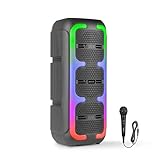- Musikbox Bluetooth : Mehrfarbige LED Lichtshow pulsiert zur Musik – wählbar an/aus – schafft spektakuläre Atmosphäre für Karaoke, Feier, Grillfest.