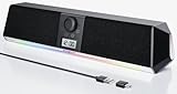 - 【Einfache Bluetooth‑Umschaltung】Diese pc soundbar ermöglicht so ein besonders unkompliziertes Umschalten. Nach dem Anschließen des USB-Kabels kurz die Taste „M“ drücken, um in den Bluetooth-Modus zu wechseln. Zum Zurücksetzen der Verbindung M dauert 3 Sekunden lang gedrückt halten
