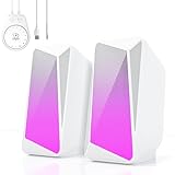 - [Dynamischer beleuchtungseffekt]: Diese Computer-Soundbar verfügt über einen LED-Streifen, und Sie können die Beleuchtungsfarbe mit den Lichttasten an der Seite des Lautsprechers wechseln. 2 Modi einstellbar: Farbverlauf, Monochrom. Verleiht Ihnen ein starkes Gefühl von Atmosphäre.