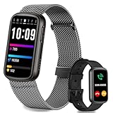- 1,47" HD-Touchscreen & 2 Armbänder: Diese Smartwatch verfügt über ein klares 1,47"-HD-Display, das sowohl bei Sonnenlicht als auch bei schwachem Licht gut lesbar ist. Sie bietet über 200 integrierte Zifferblätter sowie die Möglichkeit, eigene Fotos als Hintergrund zu verwenden. Mitgeliefert werden zwei Armbänder: ein atmungsaktives Silikon-Sportarmband für das Training und ein elegantes Metallarmband für den täglichen Gebrauch.