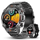 - Herren Smartwatch in Militärqualität: Smartwatch Herren Militär ist aus hochfestem, gehärtetem Metall und robustem Glas gefertigt. Sie ist wasserdicht, staubdicht und sturzsicher, selbst bei extremen Temperaturen bis zu -30 °C. Sie eignet sich hervorragend für Outdoor-Abenteuer wie Skaten, Wandern und Bergsteigen. (Hinweis: Nicht zum Tauchen oder für die Nutzung im Whirlpool empfohlen.)