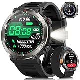 - 【LED-Leuchtfeuer】Die militärische Herren-Smartwatch hat ein leistungsfähiges Leuchtfeuer mit 6 - 8 Metern Beleuchtungsdistanz. Ideal für Camping, Wandern und Nachtabenteuer. Es bietet sofortige Beleuchtung bei Notfällen und kann auch als Notsignal genutzt werden.