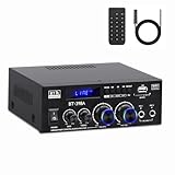 - 【Komplett aufgerüstet】Simple Aluminium-Gehäuse für diese 398A, mit Bluetooth, USB, SD und Line etc. Input-Modi, Experience Upgrade, nur die Höhen, Bässe und Lautstärke-Tasten zu behalten, einfach zu bedienen. Darüber hinaus kommt das Gerät mit 2 Mikrofon-Eingangsbuchse und Mikrofon Lautstärketasten, für den Heimgebrauch konzipiert, geeignet für Partys, Festivals und andere Multi-Szenarien. Mit der verbesserten Konfiguration unterstützt der Verstärker die Langzeitnutzung ohne Verzögerung und bietet Ihnen das ultimative Stereo-Sound-Erlebnis.