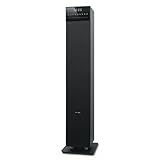 - Stilvolles Tower-Lautsprechersystem mit 50 W Leistung, Fernbedienung und einem klaren und kraftvollen Klang, dank des schwarzen Holzgehäuses.
