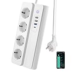 - ★ TIMER-FUNKTION: Ausgestattet mit 4 individuell programmierbaren und aktivierbaren Schuko-Buchsen und 4 USB-Eingängen, die ebenfalls programmierbar, aber nicht einzeln aktiviert werden können. Sie können jede einzelne Steckdose nach Belieben aktivieren oder deaktivieren, ohne die Ladegeräte feststecken und trennen zu müssen, wenn Sie sie nicht mehr verwenden. Sie können eine Stromversorgungszeit einstellen, nach deren Ablauf die Steckdose getrennt wird, ohne dass Sie physisch auf die Steckdosenleiste einwirken müssen.