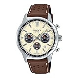 - Der EDIFICE-Chronograph ist inspiriert von den gewölbten Glasinstrumenten des klassischen Sportwagens. Dieser Chronograph verfügt über eine Kalenderfunktion (Datum) und ist mit einer Stoppuhr, einer 24-Stunden-Anzeige und leuchtenden Zeigern ausgestattet.